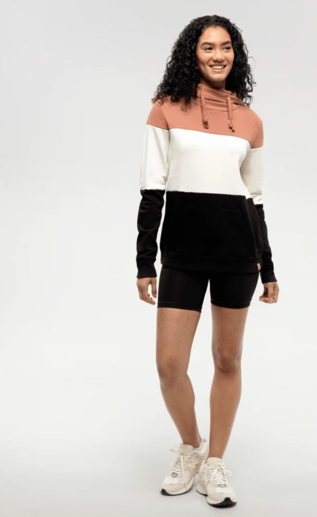 The women's Banshee hoodie stands out with its trendsetting colourblock design, it's a streetwear take with a sustainable twist.