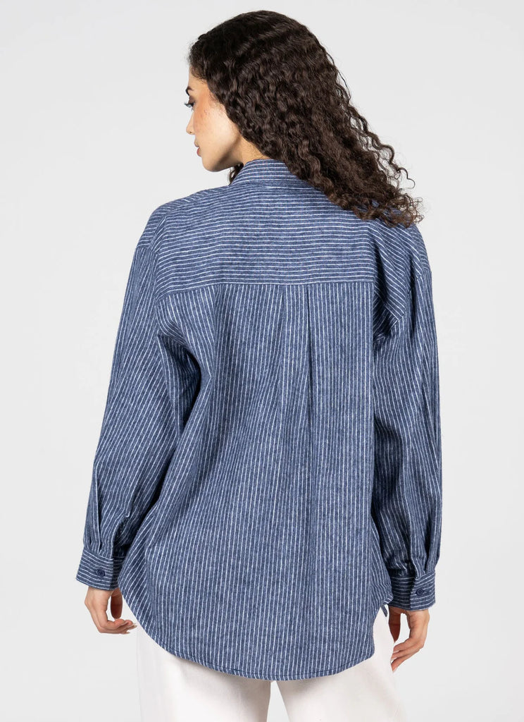 Relaxed Fit Stripe Blouse - Denim Blue