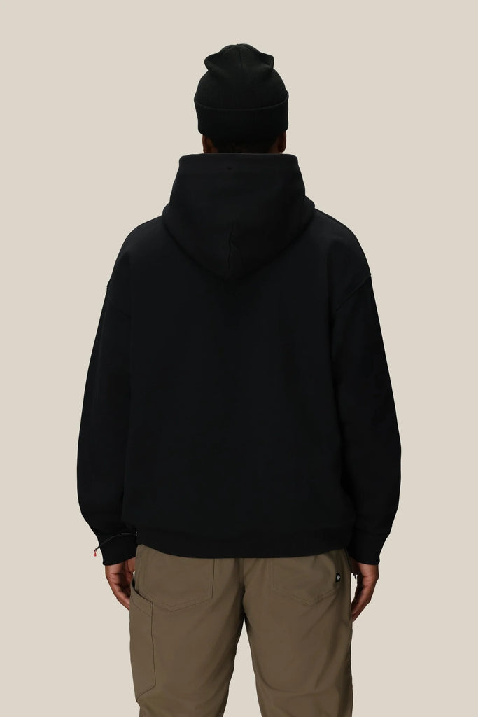 Because we have to add tech to everything—we made a classic zip hoody into something you can ride in with a water-resistant outer layer and a warm fleece lining.