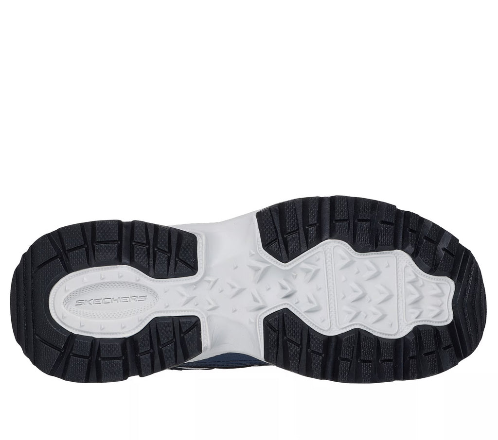 Take the trails in feet forward comfort with Skechers Hands Free Slip-ins® : Vigor AT. This outdoor trail design features a leather and synthetic upper with stretch laces, a Skechers Air-Cooled Memory® insole and a rugged traction outsole.