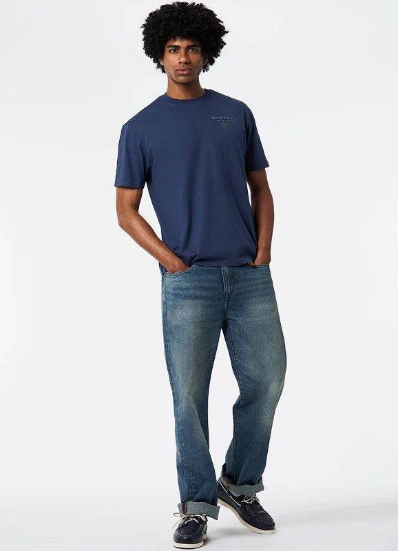 The Tarek men’s graphic tee features a bold “Smoke Show” back print with a rugged buffalo illustration and “Spirit of the Wild” slogan. Made from soft 100% cotton in a deep navy hue, it blends nature-inspired style with everyday comfort. Our new regular-fit t-shirts offer a roomier midsection, slightly dropped shoulders, a longer length, widened biceps for extra comfort, and a gently dropped neckline for an effortless fit.