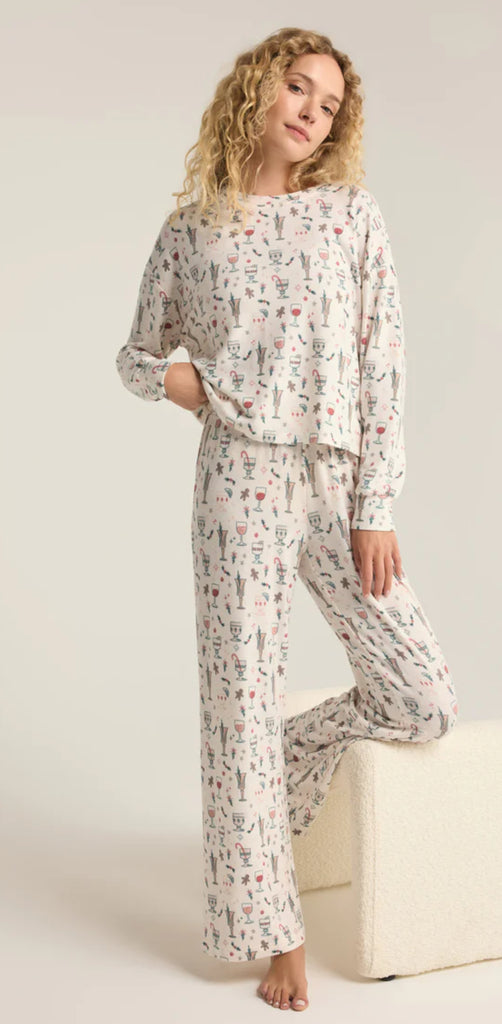 This brushed knit top brings all the vintage holiday vibes with an allover holiday cocktail print for a playful twist. Buttery soft and long-sleeved, it’s perfect for kicking back and enjoying the festive season in total comfort.