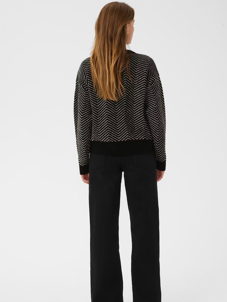Chevron knit sweater with a soft finish and straight fit. Features a crew neckline, full-length sleeves, and ribbed hem and cuffs for a clean silhouette.