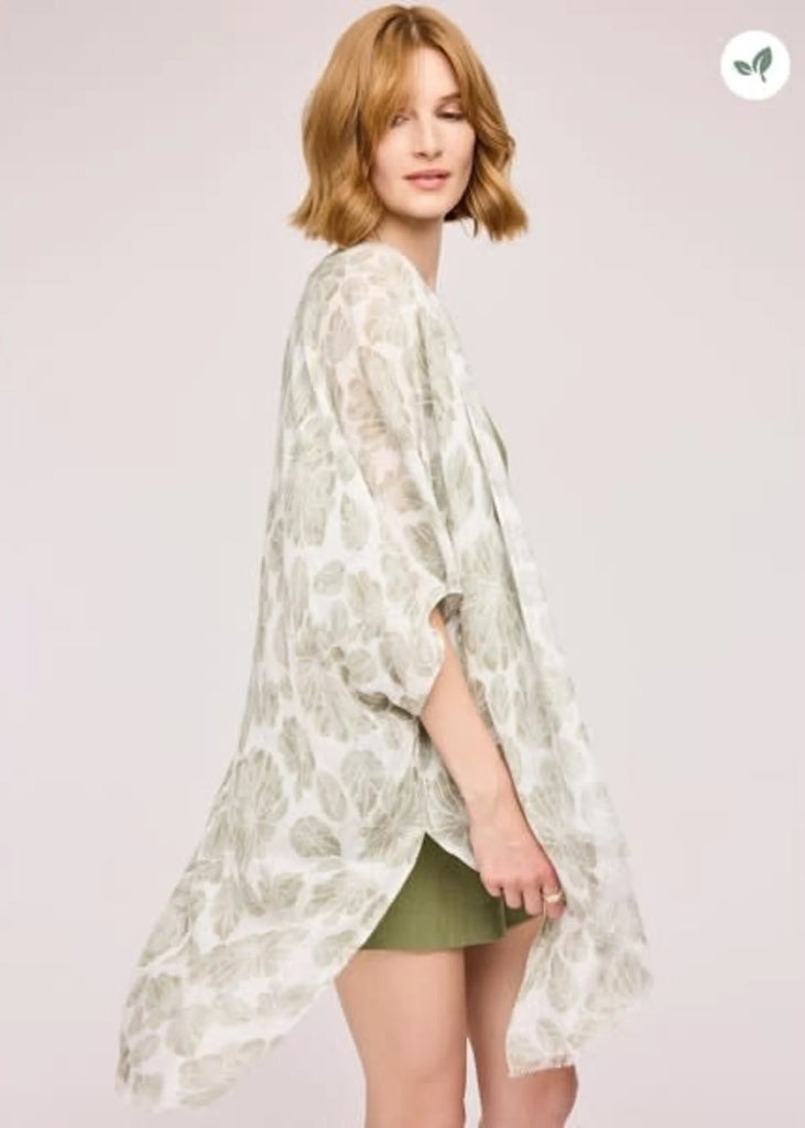 The Dawn cover-up is made of EcoVero viscose and features a print that was designed in-house. Layer it with a t-shirt and jeans for a casual look, over a bathing suit for a day at the beach and as a light layer to finish the look over a dress for that special event.