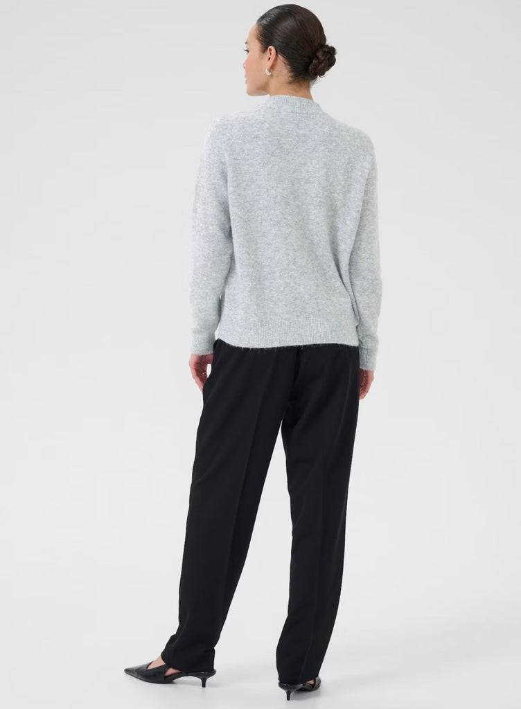 Knit sweater for women with straight fit, high neckline, and decorative detailing at the collar. Long sleeves and soft texture offer comfort and versatile style for work or casual outings.
