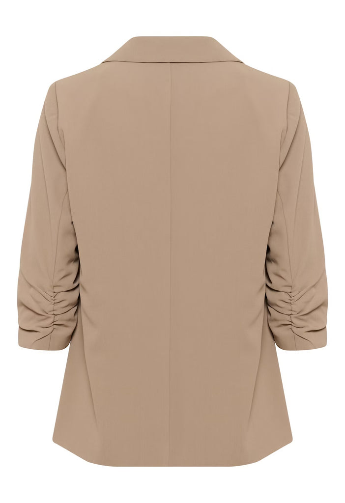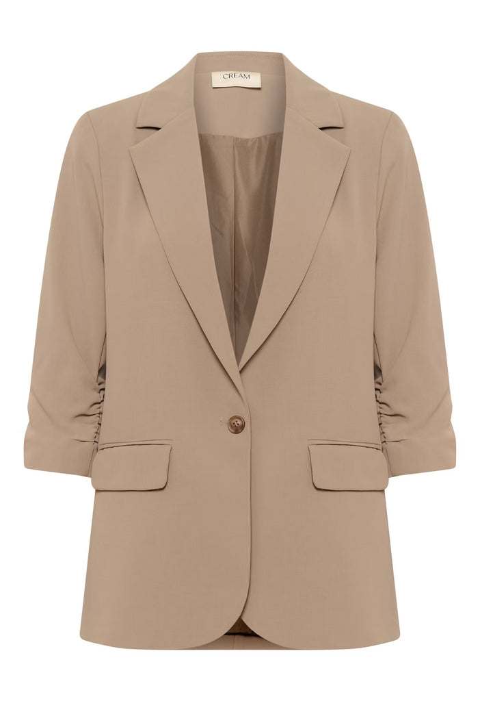 Tailored blazer featuring a relaxed fit, rushed three-quarter sleeve, and classic lapel collar. Perfect for both Business and casual.