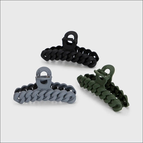 Eco-friendly Chain Claw Clip 3pc Set - Black/Moss