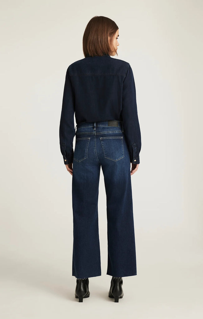 Paloma delivers a modern fit with a classic mid rise, flattering wide leg, and perfectly cropped length. This pair comes in a dark indigo wash with tonal whiskering.