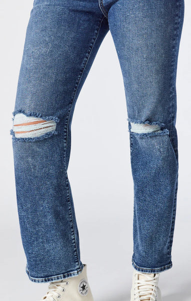 These wide leg jeans make recycling effortless. Authentic denim details like heavy washing and ripped knees meet an eco-friendly fabrication made from materials recycled from previously used garments.