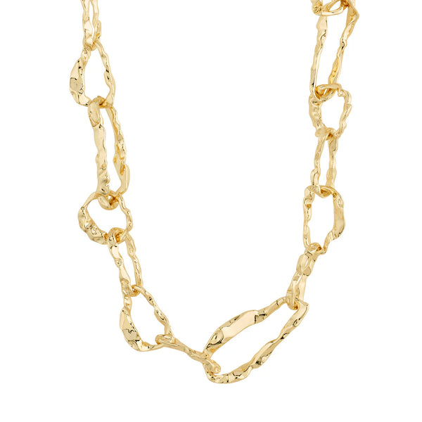Believe in your inner sparkle! The gold-plated BELIEVE necklace from Pilgrim is a tribute to your inner glow. With a genderless, fluid design and large open links, it adds an urban cool twist to your favourite outfits. The chain's rustic look combined with a lovely handcrafted feel gives you the key item of the season. Get ready to rock a downtown vibe with a piece of jewellery that's as unique as you are. The chain measures 44 cm + 14 cm extension chain and is made from 98% recycled material.