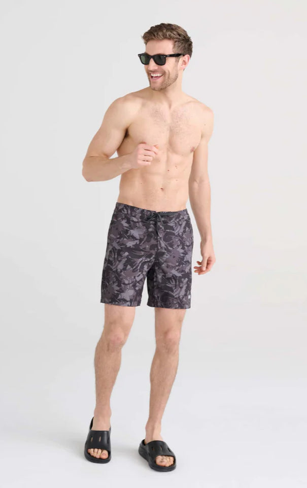These board shorts combine a Slim Fit liner under a fixed-waist shell. The integrated liner is form-fitting around the butt and thighs.