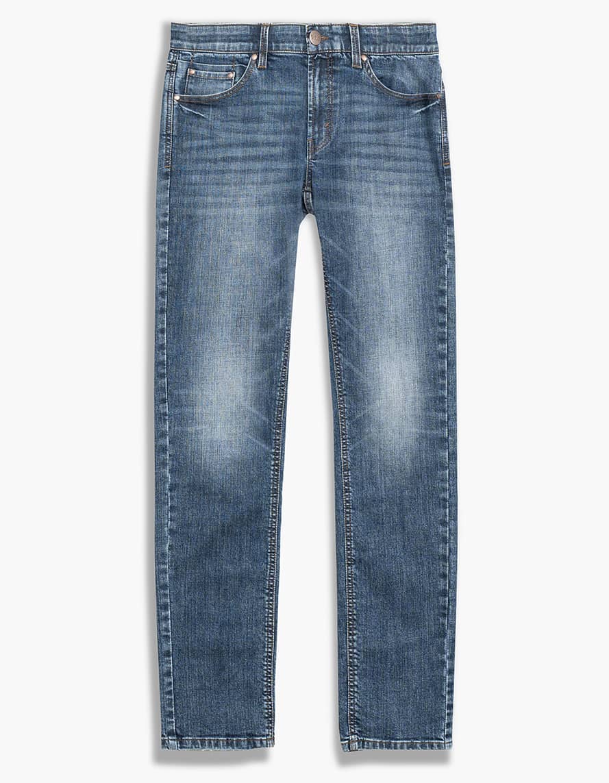 Low waist straight leg, slightly tapered classic fit & comfortable feel.