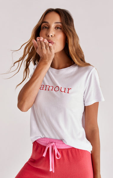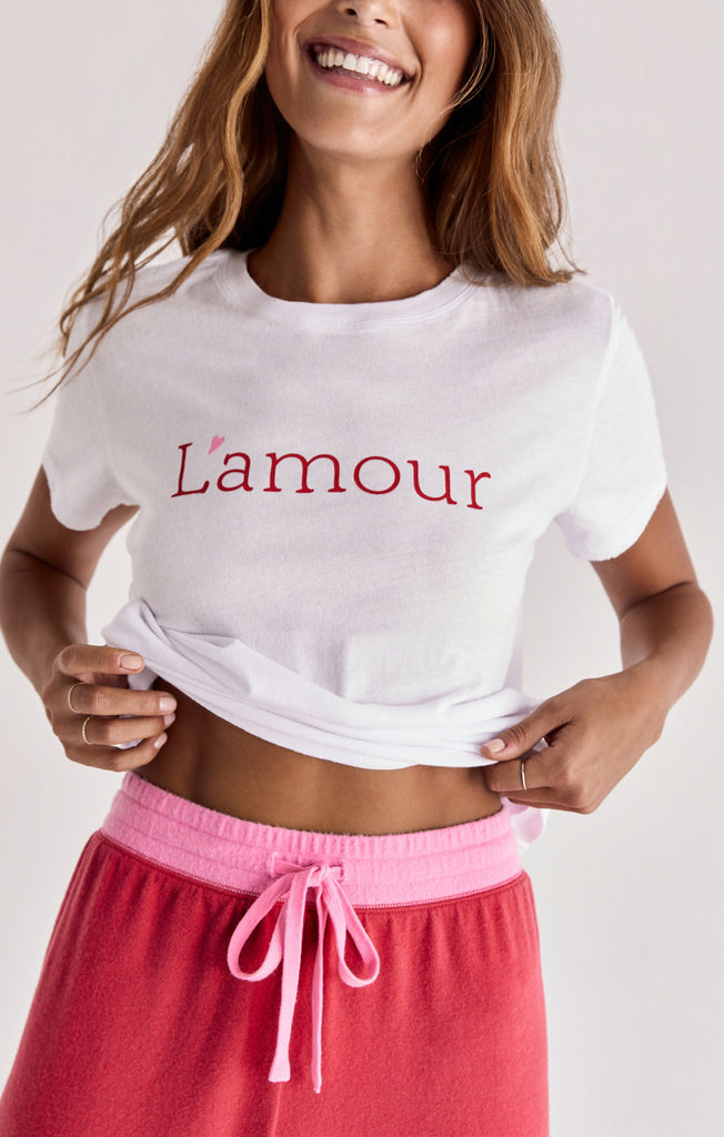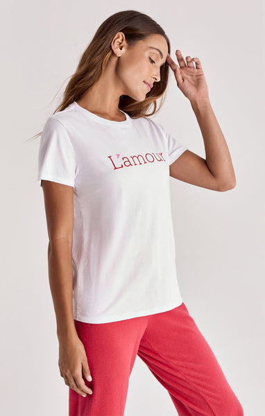 The Organic Easy Lamour Tee is a sweet graphic t-shirt, perfect for pairing with anything from denim to a mini skirt! This adds a fun and carefree vibe to any outfit!