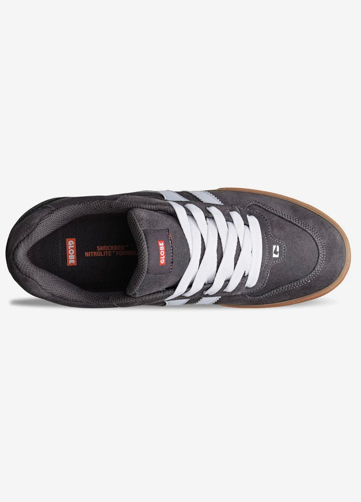Part of our Heritage Series, this vulcanized skate style with twin design stripes is the evolution of our classic style, the Encore. With upper constructed from durable suede leather and microfiber, the Encore II in Phantom/Gum also features full-length herringbone outsole pattern for grip and board feel and triple-stitched toe cap for durability and protection.