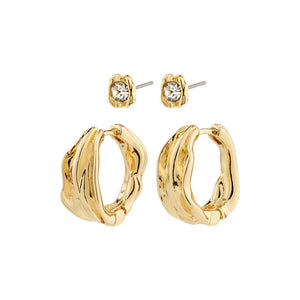 Feel the joy in simple moments! With the 2-in-1 set of earrings from Pilgrim's FEEL collection, you can mix your everyday styles with a touch of glam. The set consists of gold-plated hoops in a beautiful organic design for a natural chic look and stud earrings with sparkling Preciosa crystals, perfectly framed in a beautiful organic shape. Whether you're going for an everyday outfit or a more dressy look, here's a versatile, classy set that's also made from 97% recycled material. The ultimate duo for any fashionista who appreciates style with substance.