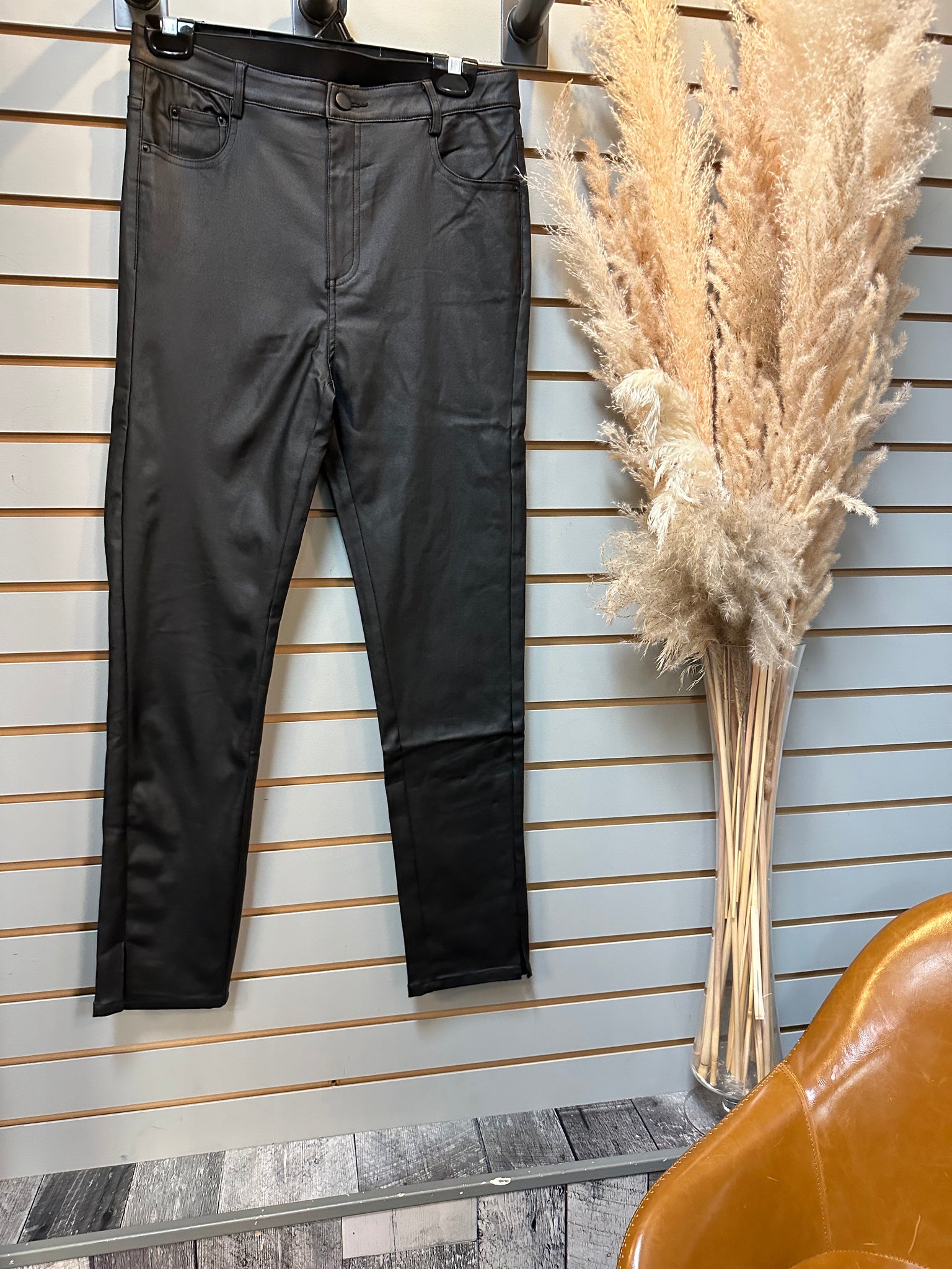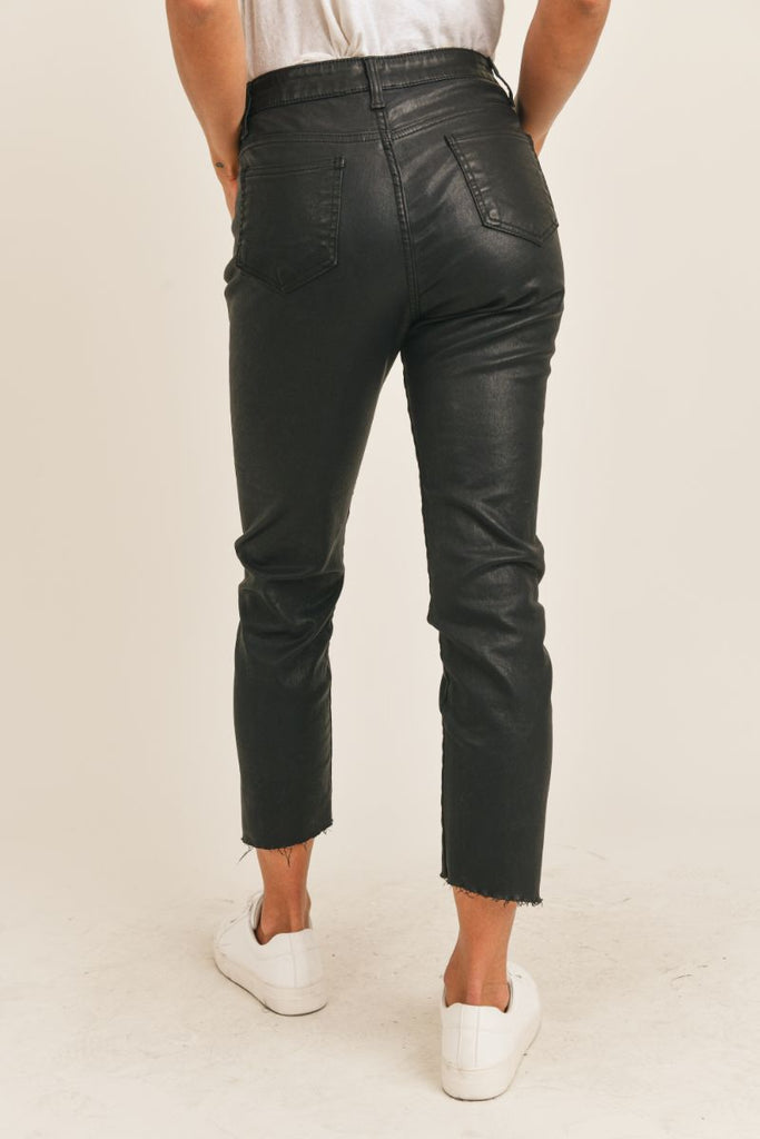 GIRL ON TOP COATED DENIM STRETCH PANT- Black