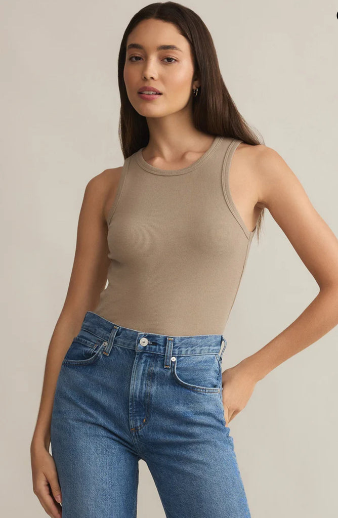 This crewneck tank is soft, sleek, and bra-friendly, perfect as a base layer in cooler weather or on its own as an elevated option. With its comfy ribbed fabric and fitted, tuckable design, it’s the kind of piece you’ll keep reaching for, no matter the season.