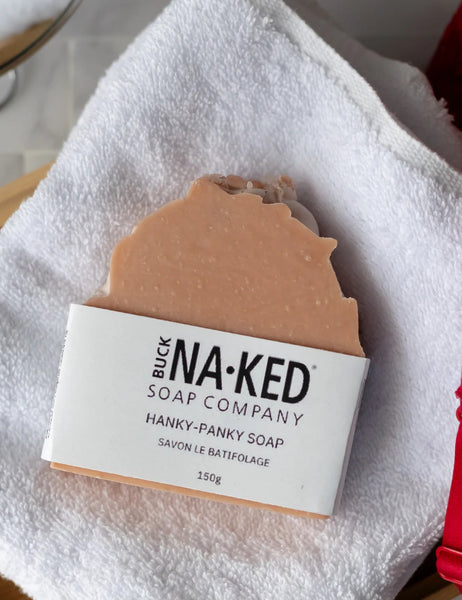Be the hanky to our panky with this playful and romantic bar. Scented with cinnamon essential oil, designed to add that extra spark to your Valentine's Day. Let the enticing aroma of cinnamon set the mood and get your blood pumping - perfect for a scrub-a-dub for two. So, lather up, ignite the senses, and indulge in some sudsy fun. Spread the love and make this Valentine's a memorable one with "Hanky Panky"!