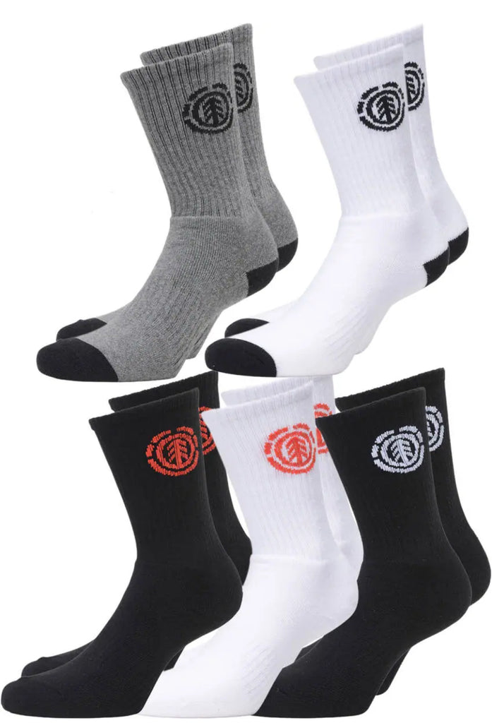 The High-Rise Socks by Element is a 5-pack of socks for men in a high profile athletic design. They feature a light cushioning and comes in an anti-moisture knit construction, perfect for active days where a bit of shock-absorption is convenient - Like when skateboarding.