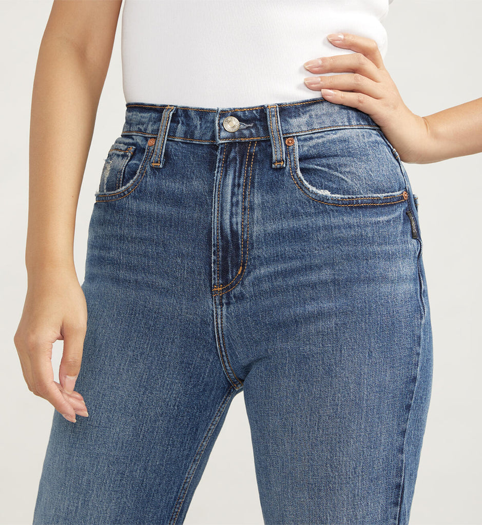 With plenty of vintage vibes, Highly Desirable is Silver Jeans Co.’s™ highest rise yet. It’s fitted at the waist, slim through the hip and thigh, and relaxed through the leg. The result? A ‘90s jean that flatters, lengthens, and has an epic butt-lifting effect. Finished with old-school details.
