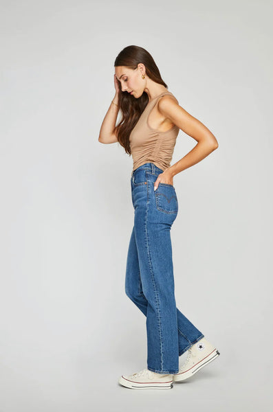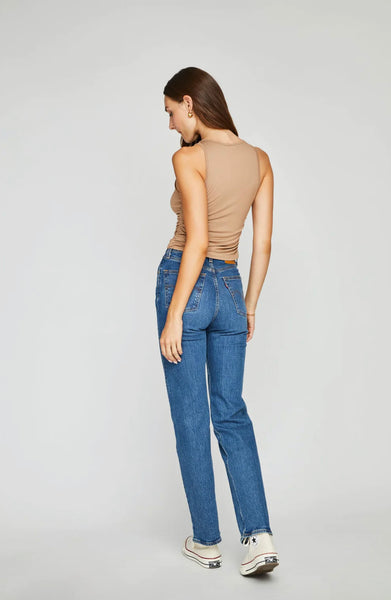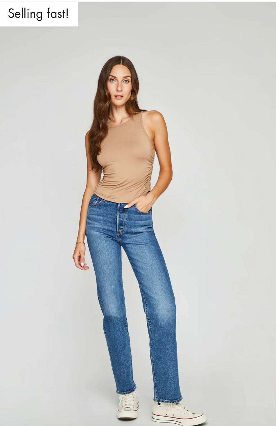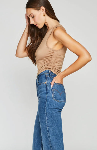 The Kimberly tank is made of super soft EcoVero rayon jersey. Features include a crew neckline and internal brushed elastic that creates a ruched effect.