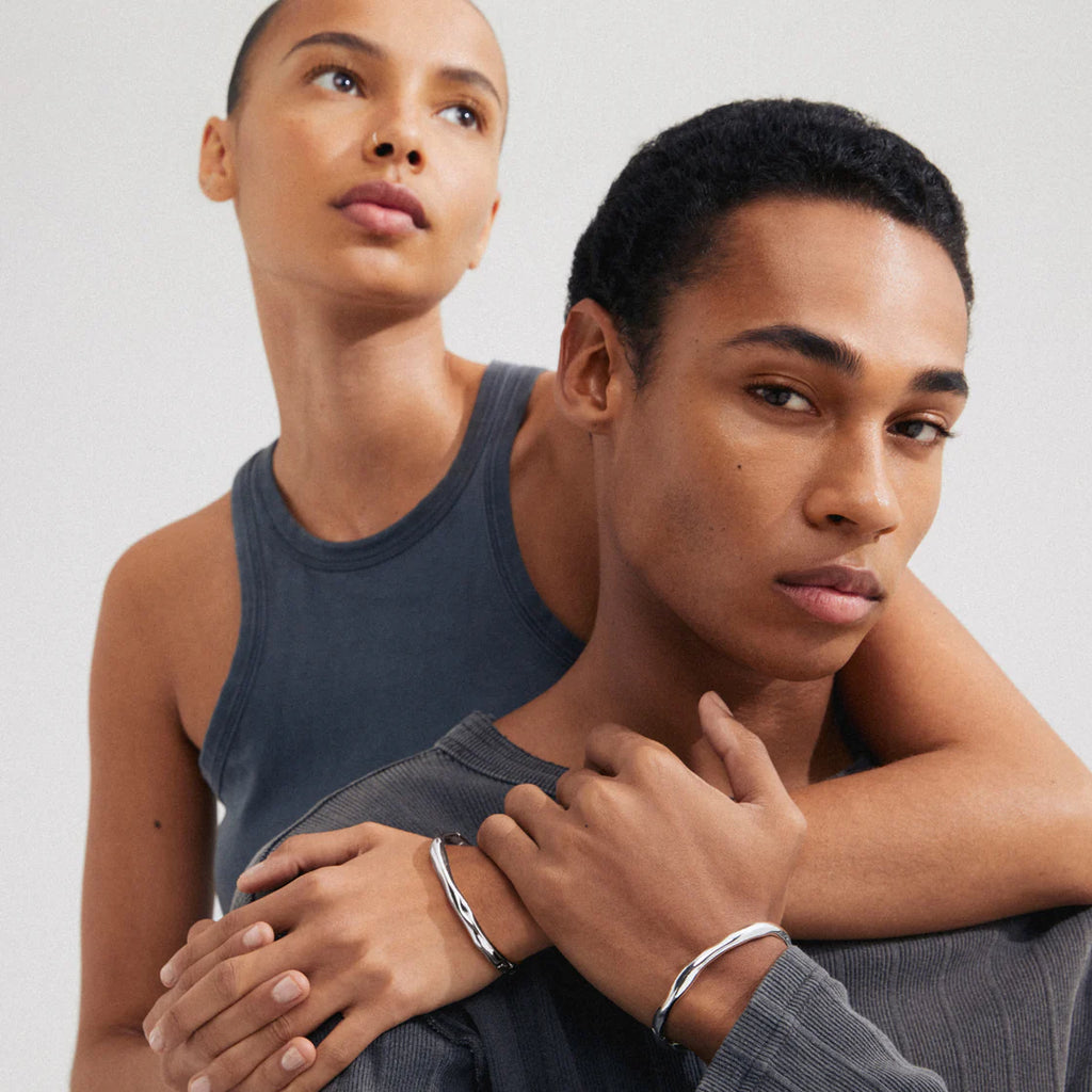 Spread the light with the silver-plated bangle from Pilgrim's LIGHT collection. A super shiny piece with a great quality feeling and a stylish Scandi design. The bracelet's wavy shapes catch the light and allow for styling with multiple bracelets for a customised stacked look. For a unique finishing touch for your everyday outfits or your favourite party dresses. Opens easily with a click clasp and is made from at least 75% recycled material.