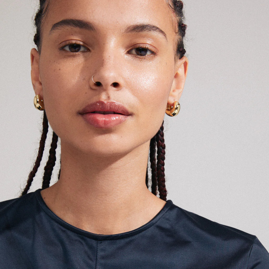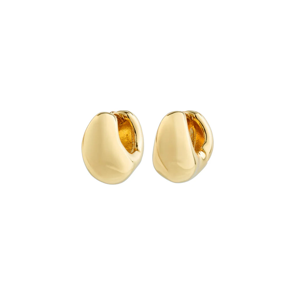 Be the light, with ultra chunky earrings from Pilgrim's LIGHT collection. The gold-plated huggie hoops with unique wavy shapes are inspired by the Scandinavian design tradition. The earrings have an easy-to-use click clasp and are made from at least 75% recycled material.