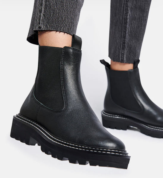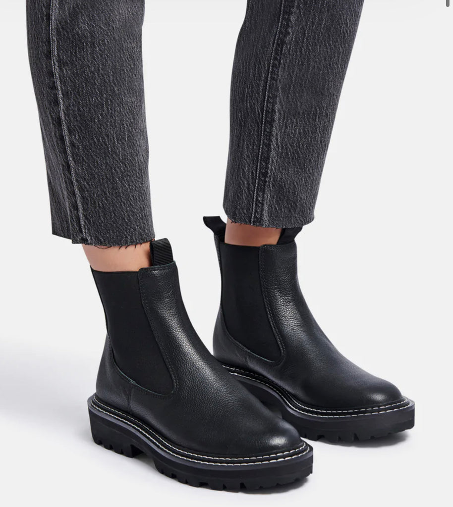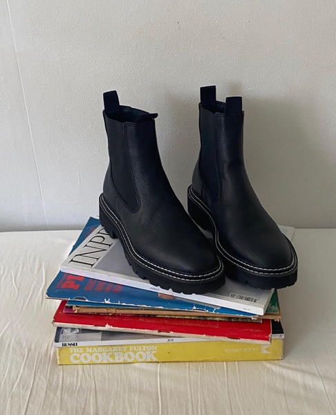 An unexpected update to your most-loved boots. MOANA pairs iconic chelsea boot styling with a playful bicolor lug sole, adding a hint of sunny attitude to these rainy-day boots. Pair MOANA with this season's silky midi skirts for an instant all-weather upgrade.