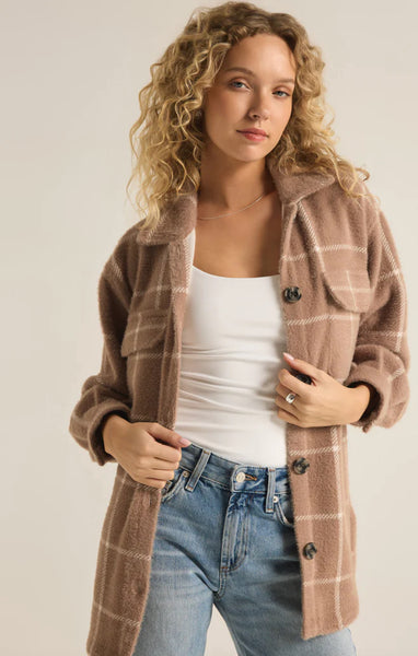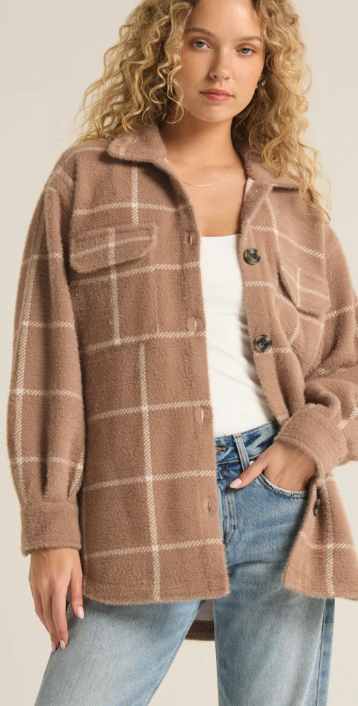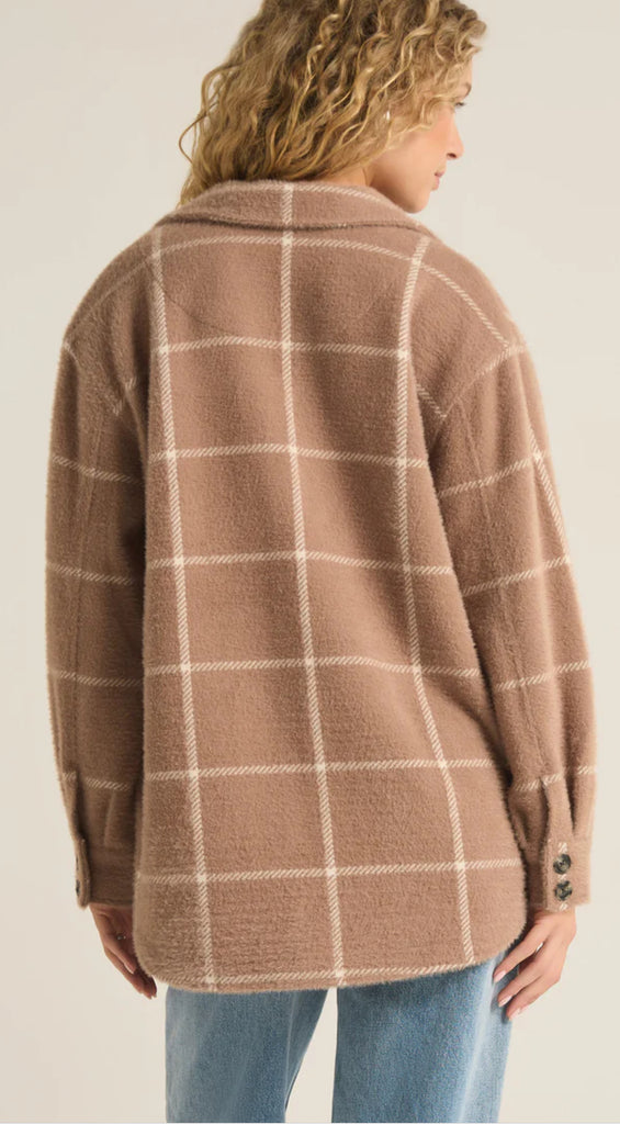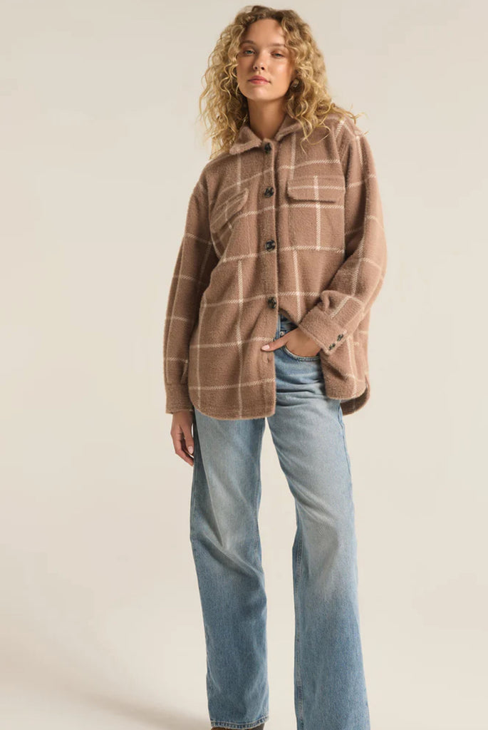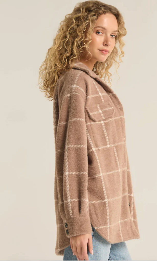 PLAID TUCKER SHIRT JACKET- Heather Taupe