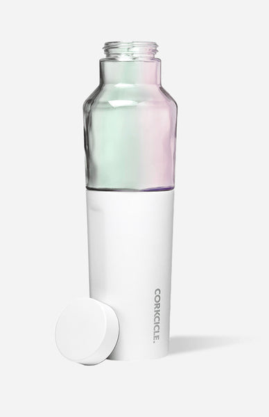Hybrid Canteen is perfect for those who prefer the hypoallergenic properties of a glass bottle with the cooling power of insulated stainless steel. This holds 20 oz and is perfect for infusing fruit or food-grade essential oils