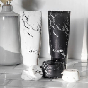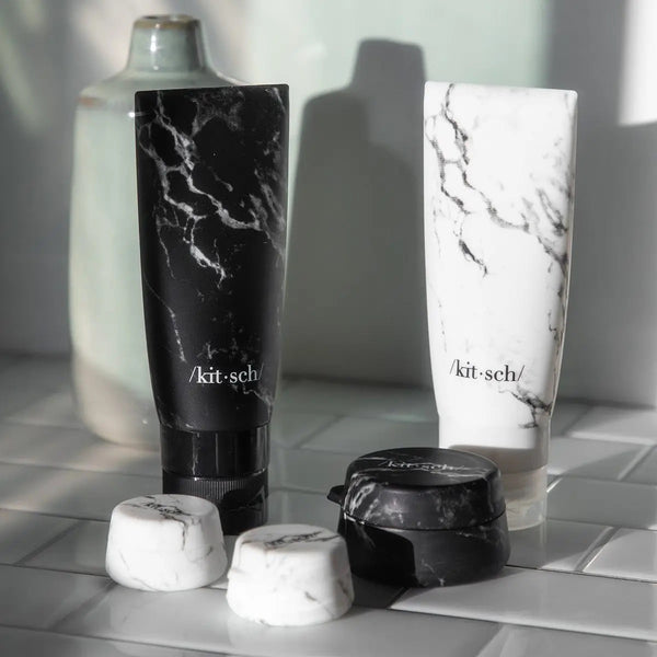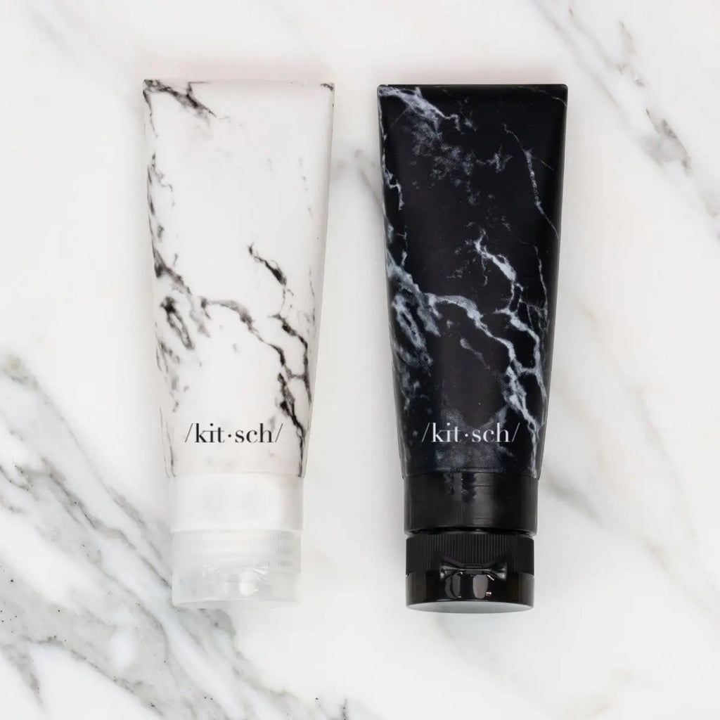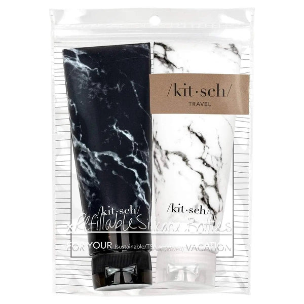 Refillable Silicone Bottle 2PC Set - Black & White Marble