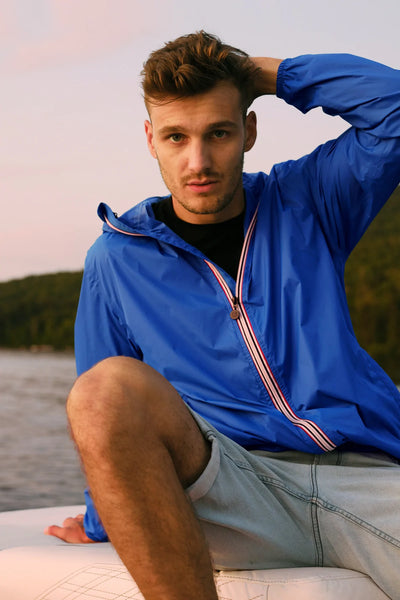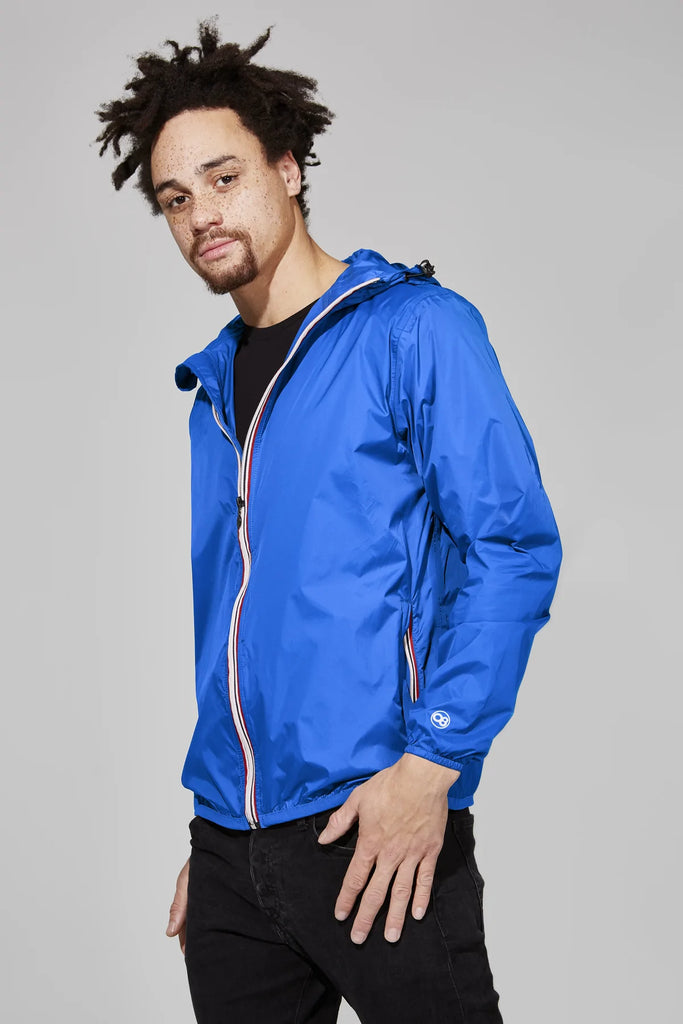Our full-zip printed packable rain jacket and windbreaker is waterproof and breathable, with heat sealed seams, and packs conveniently into its own side pocket with a handy clip that easily attaches to a bag, backpack, belt loop, you name it… so you can bring it along wherever you go.