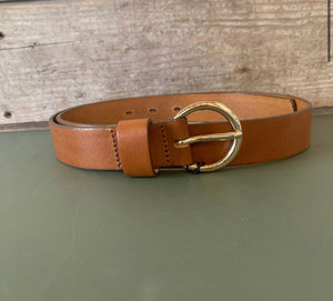 Leather Belt with simple round buckle. Nickel Buckle with black strap, light gold buckle.