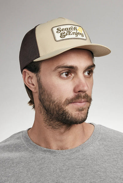 A subtle reminder to enjoy the journey, the Search & Enjoy trucker hat keeps your adventure on track regardless of how lost you get. The deep fit and curved bill will help you stay focused on what's ahead while keeping you cool by letting the air flow freely.