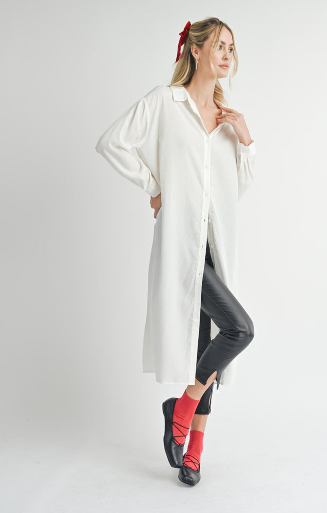 SPENCER LONG BUTTON DOWN SHIRT- IVORY