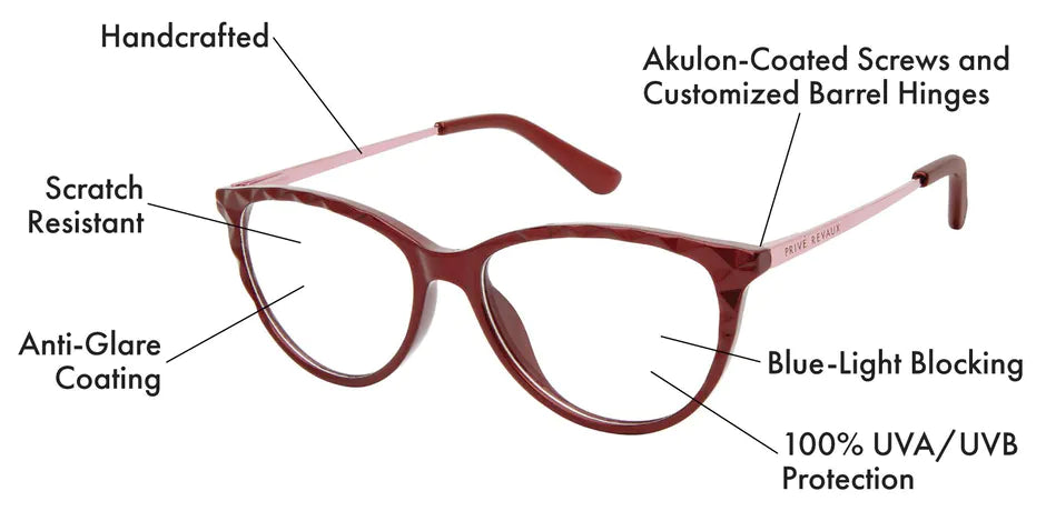 Our blue-light-blocking lenses protect your eyes from harmful blue light and UV rays emitted from screens, digital devices, artificial lights, and the sun. Unlike many blue-light lenses that look yellow, ours are virtually clear — giving you all the protection you need with a crystal-clear view. A must-have for every screen lover.