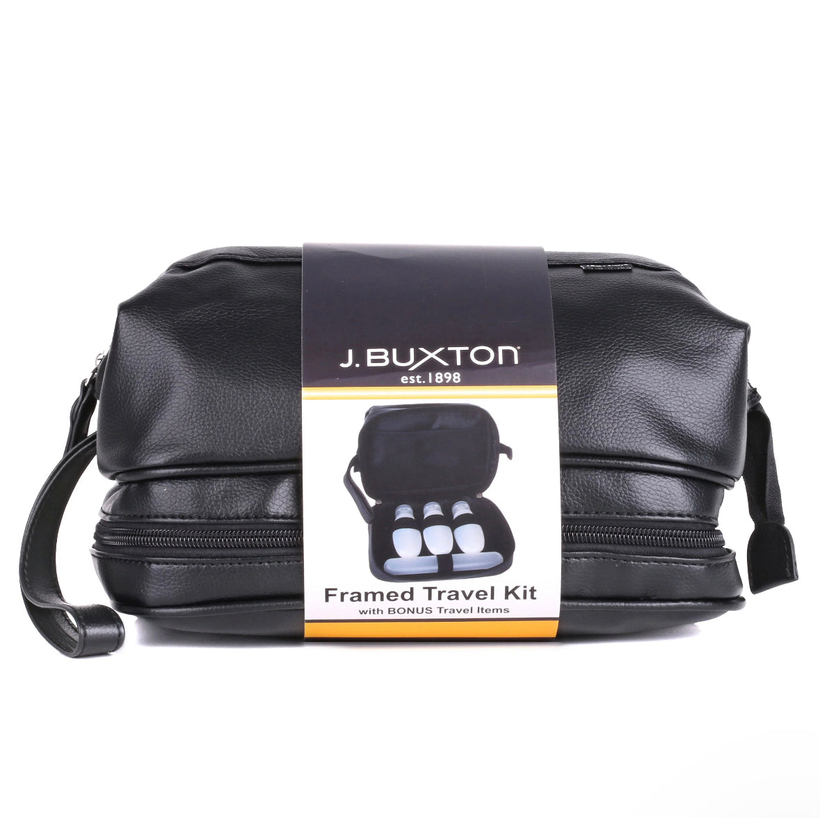Pebble Grain Vegan Leather Travel Kit with Gifts features a top zip large opening main compartment, interior zipper and slip pocket, zip-around bottom holds travel items, 3 TSA compliant refillable bottles, toothbrush holder and mesh pocket.
