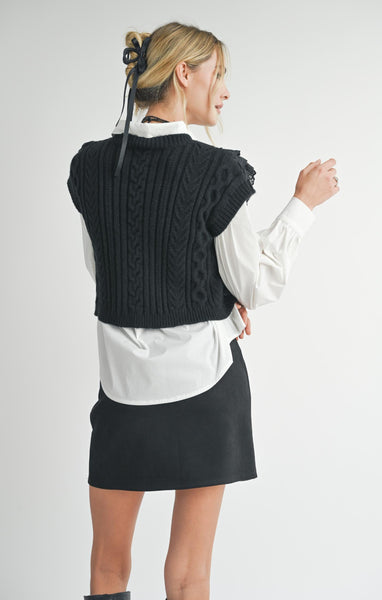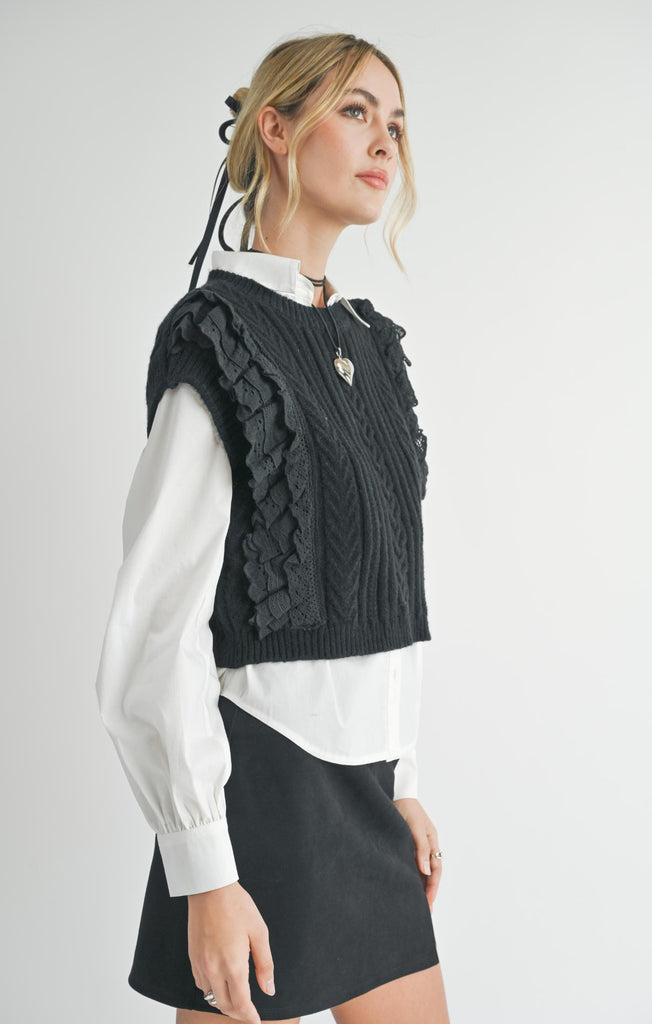 VICKI LACE RUFFLES SWEATER TANK- Black