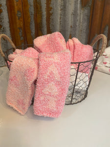 Z Supply 2 Pack Plush Heart Socks- pink cherry